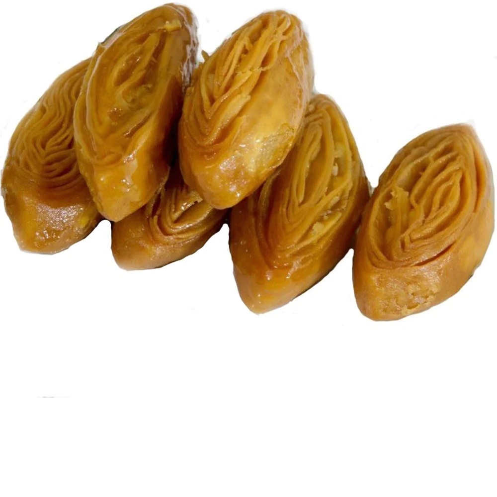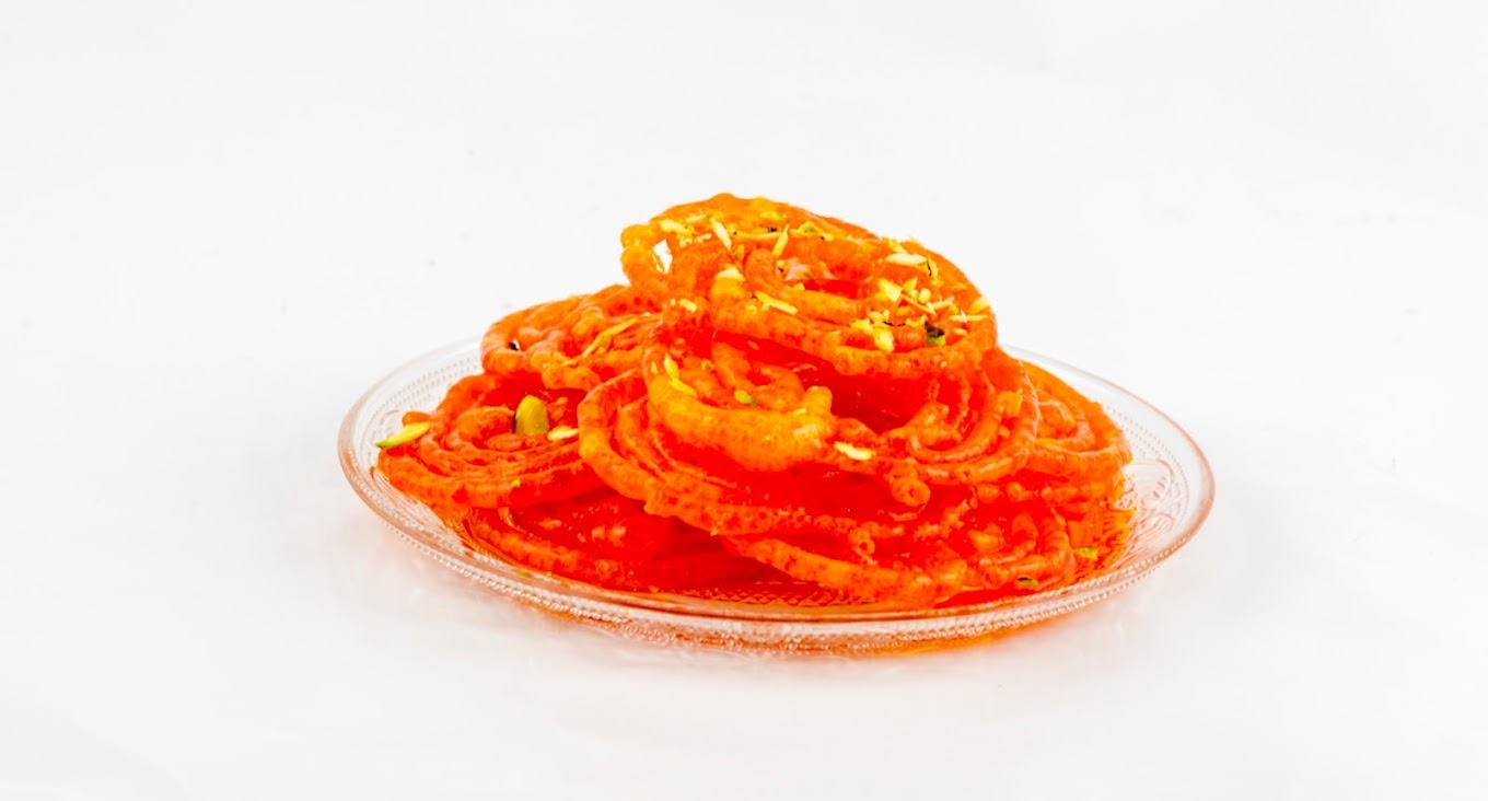 Jalebi is firm, greasy, crunchy, and somewhat chewy due to the crystallized sugar exterior. The warm, soft, and melting sugary interior pops into the mouth with each bite, giving off a gooey, crisp, and comforting feel.